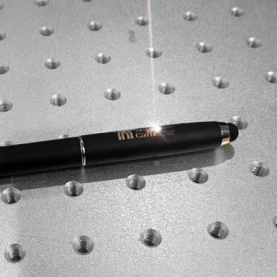 Process that uses a high-powered laser beam to etch designs, text, or images onto the surface of a material.